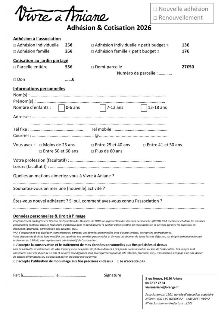 Vous pouvez remplir le bulletin d’adhésion ci-dessous et l’apporter au local pendant les horaires d’ouverture, ou le laisser dans la boite aux lettres de l’association. Le paiement se fait par chèque, espèces ou virement.